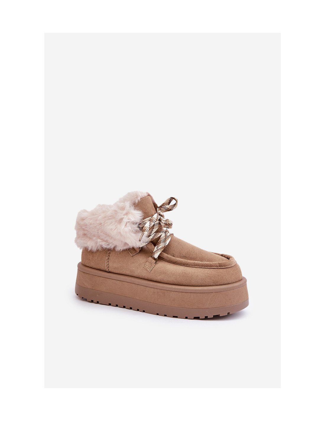 Moteriški sniego batai iš ekologiškos zomšos – puikus pasirinkimas žiemai, derinantis stilių su funkcionalumu. Platformos dėka įgysite kelis papildomus centimetrus ir apsaugosite kojas nuo šalčio. Batai turi raištelius priekyje, todėl puikiai priglunda prie kojos, o vidinis kailis užtikrina šiluminį komfortą. Šie stilingi batai puikiai tinka žiemos pasivaikščiojimams ir kasdienėms išvykoms šaltomis dienomis. Renkantis dydį, vadovaukitės dydžių lentele.